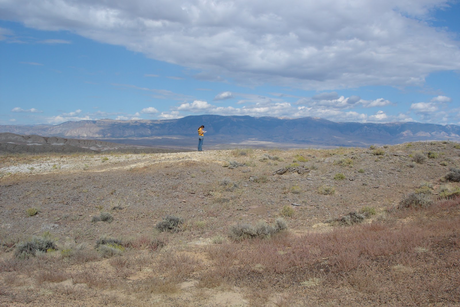 | A geology student on some alluvium, Western USA, Fall 2005. |