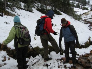 Although less-than-ideal, I have done some geology fieldwork in the snow. During my undergraduate field program, we did some mapping in Montana in early September. We had to shovel the snow off the outcrops in order to identify them. The teaching assistants took pity on us and helped us find key contacts, at least. Most recently, I was on a geology trip in Switzerland & Italy and had to hike through significant snowfall… in early June! We didn’t expect or even particularly dress for heavy snow, but we didn’t let that stop the field trip. Geologists are tough… though a few of us did purchase some expensive (Switzerland is expensive!) hats and gloves.