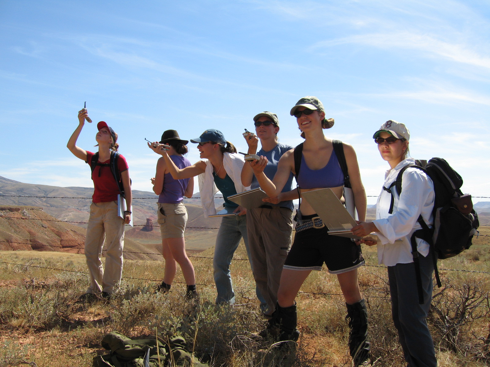 | Bruntons can be mystifying at first to geology field camp students. The Stretch (Dartmouth College’s geology field camp), Western USA, Fall 2005. |