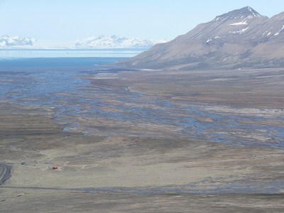 Glacial outwash delta in Svalbard, Norway. Photo courtesy of Brian Romans.