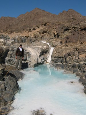 | Travertine forming in an alkaline pool. Oman, January 2009. |