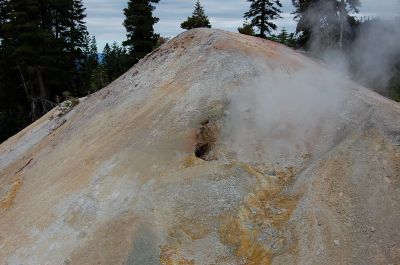 A fumarole near the road at the southern entrance of Lassen Volcanic National Park.