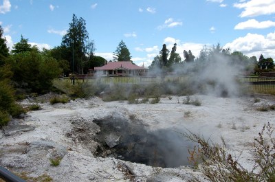 A fumarole in a sewer grate in downtown Rotorua, New Zealand.