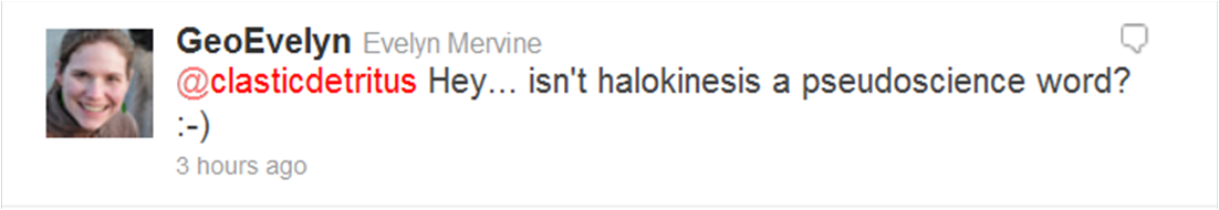 If you haven’t noticed already, I work my way through the alphabet for the Geology Word of the Week. For example, for my first geologist’s alphabet, I made my way from A is for Alluvium to Z is for Zanclean. This week I am at the letter H, so I asked for suggestions of geology words beginning with the letter H. As usual, I had many wonderful suggestions of geology words. However, I was particularly struck by Brian Roman‘s suggestion on Twitter of the word “halokinesis” as I had never heard of this word before, and it sounded– to me– like some psychic pseudoscience nonsense. Here is the twitter exchange I had with Brian this morning: