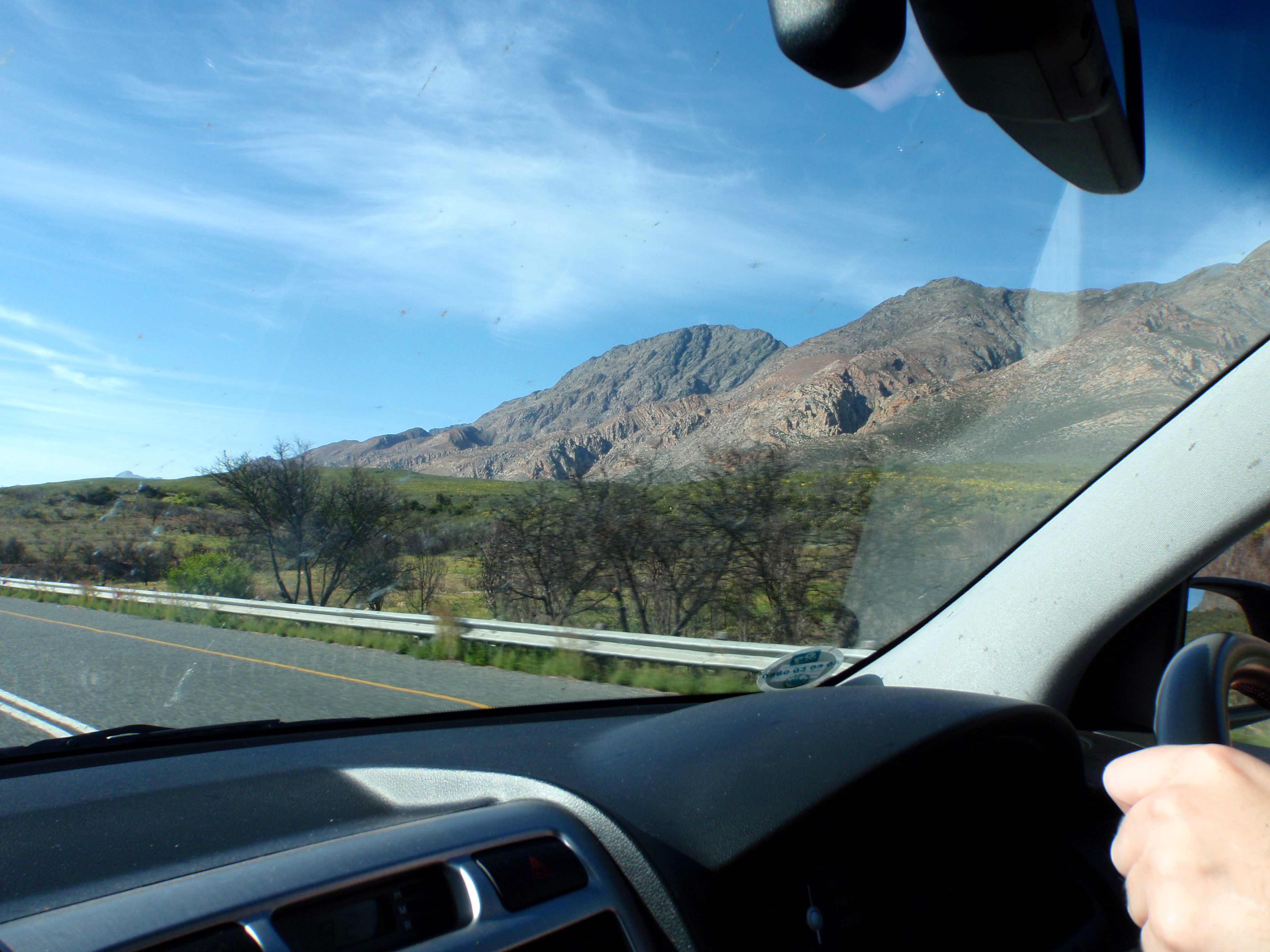 One of the things I’m really looking forward to after I finally finish up this PhD of mine is a roadtrip across South Africa. Sometime next year, my husband and I plan to take a couple of weeks vacation and drive from Cape Town to KwaZulu-Natal, where we plan to visit some friends who live in the Drakensberg (note that Drakensberg means “Dragon Mountains”– how could I not want to visit there?). We plan to stop plenty along the way, investigating some local geology of course! I imagine I will also snap many more pictures through car windows.