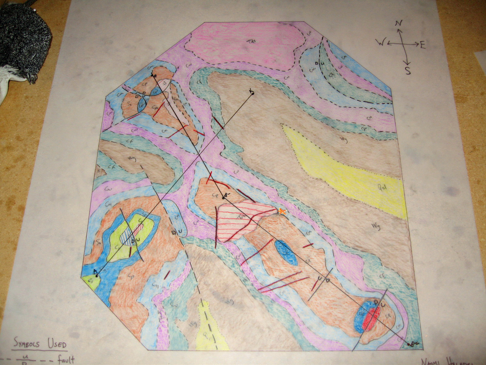 One thing I loved about learning geology back in college was coloring. Yes, coloring… or colouring, for my South African and European friends. Most of the rough geologic maps I made for assignments back in college were made using colored pencils, such as the group map shown in this week’s Monday Geology Picture above. This map was made by a small group of students during a quick (3 or 4 day, if I remember correctly) mapping project in Montana. I won’t vouch for the map’s accuracy, but the coloring sure is pretty!