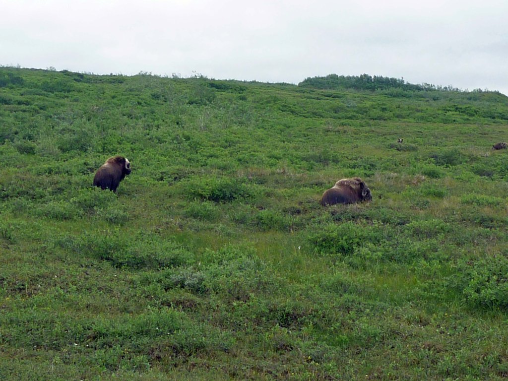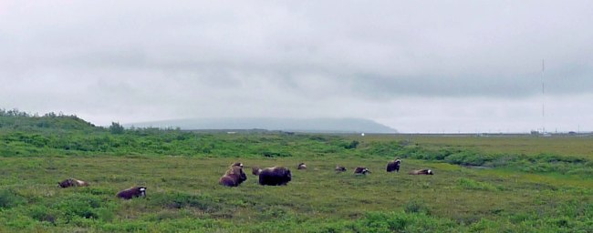Here’s a little biological interlude: pictures of some muskoxen which I encountered on the arctic tundra just outside of Nome, where I’m currently working.