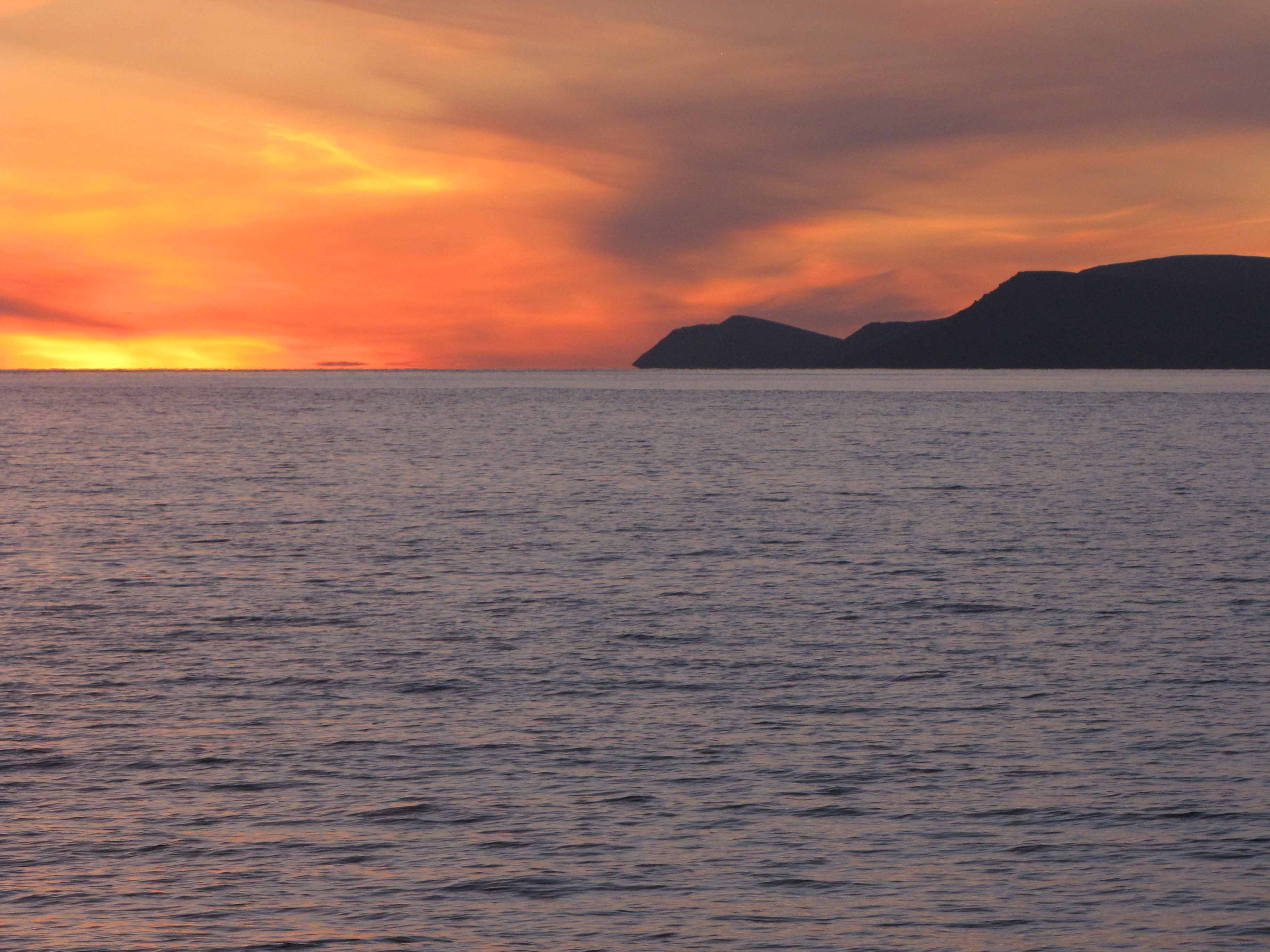 The weather in Nome has mostly been cold and rainy over these past 2 months, but yesterday was a warm (for Nome, so in the 50s), sunny day that was ended with a spectacular sunset over a very calm Bering Sea. I thought I’d share some pictures here of last night’s sunset, which provided a wonderful backdrop for the end of an enjoyable, if tiring, 2 months of work on the Bering Sea.