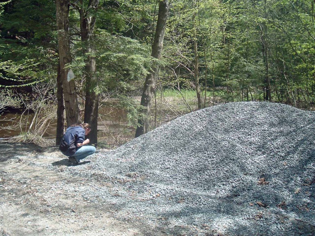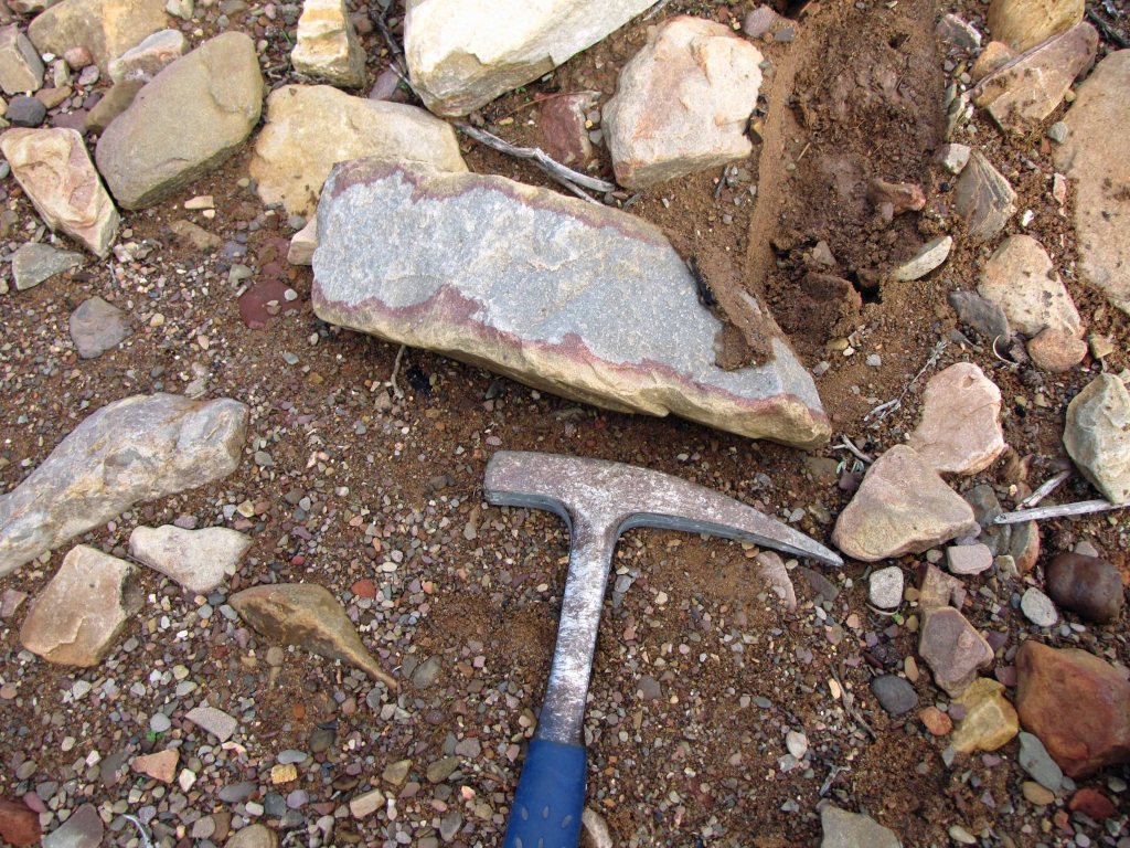 Float rocks can even be transported by anthropogenic activities. Many rocks are quarried and used for buildings, walls, roads, bridges, and other construction projects. Anthropogenic activities can move rocks far from their original outcrops. For example, in rural New Hampshire where I grew up many of the roads are gravel roads. The gravel that covers the roads is quarried and brought in by truck. I like to walk along the gravel roads near my parents’ house in New Hampshire and pick up interesting pieces of gravel. Sometimes, the gravel pieces contain spectacular garnets, micas, and other pretty minerals. I often find myself wondering about the geology of these gravel rocks. I can understand some things about the geology of these gravel float rocks, but to really understand these rocks I’d need to track down the quarry locations and go look at an outcrop or two.