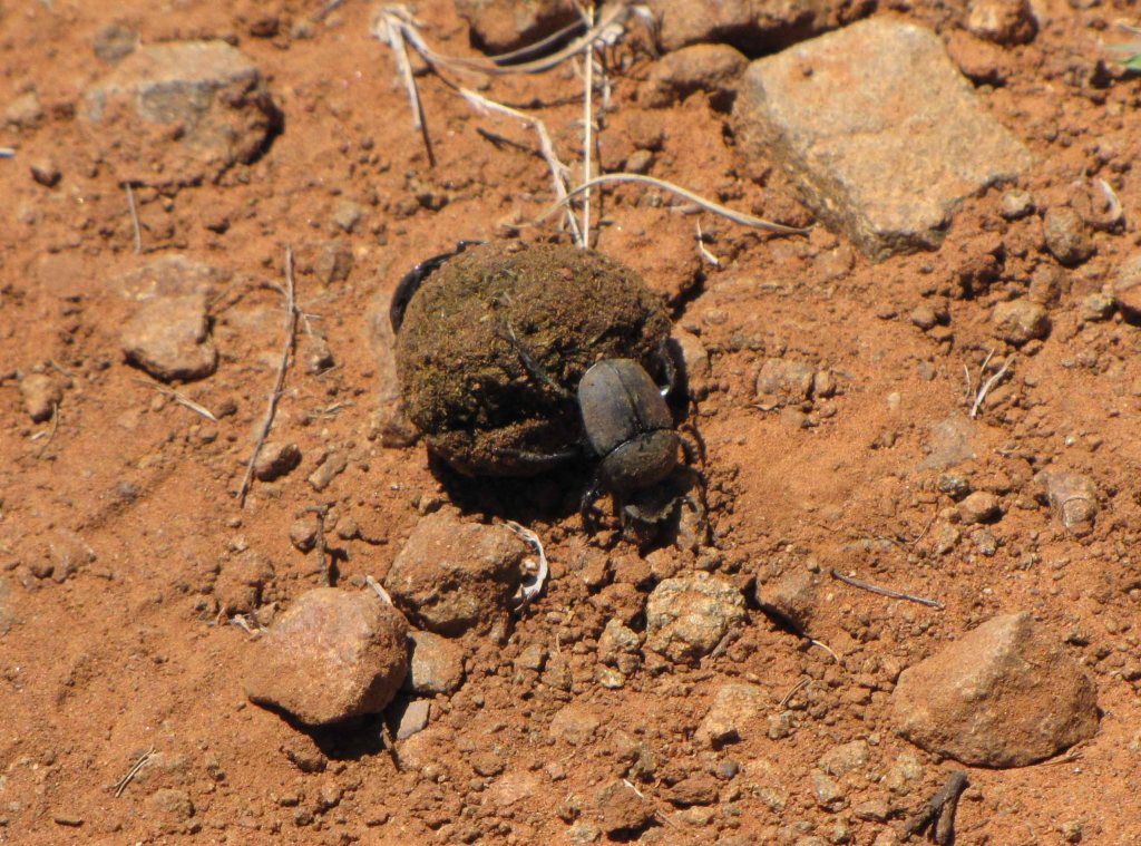 More geology posts about the LASI V workshop are coming, but meanwhile here’s another biological interlude. One day during the  Karoo field trip, we spotted a dung beetle. Dung beetles are pretty neat little critters, actually. And they can move balls of dung remarkably quickly!
