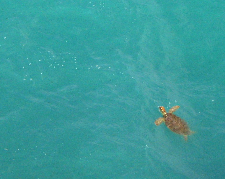 When I was back in Barbados for a student field trip back in 2009, I caught sight of a beautiful sea turtle one day. I didn’t have a very good camera back then, so I didn’t take a great picture of the turtle. The picture may not do the moment justice, but I still recall how magical it felt to observe a beautiful green sea turtle in a turquoise sea. Of course, being geologists we were at the beach to look at some rocks, which were pretty beautiful as well.