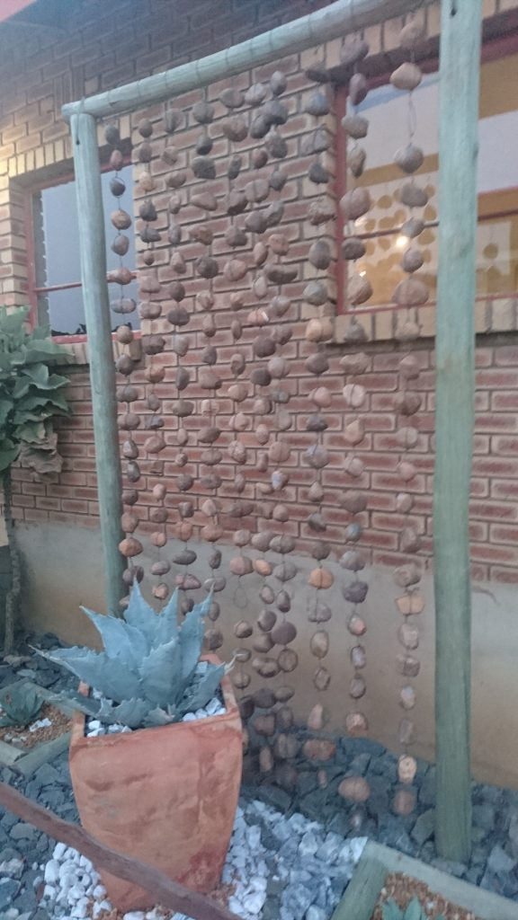This week I’m sharing another picture that I took during a recent visit to Botswana. I saw this garden decoration at a hotel. What a great way to decorate with rocks! I might have to put up something similar in my garden one day. What rock decorations do you have in your garden?