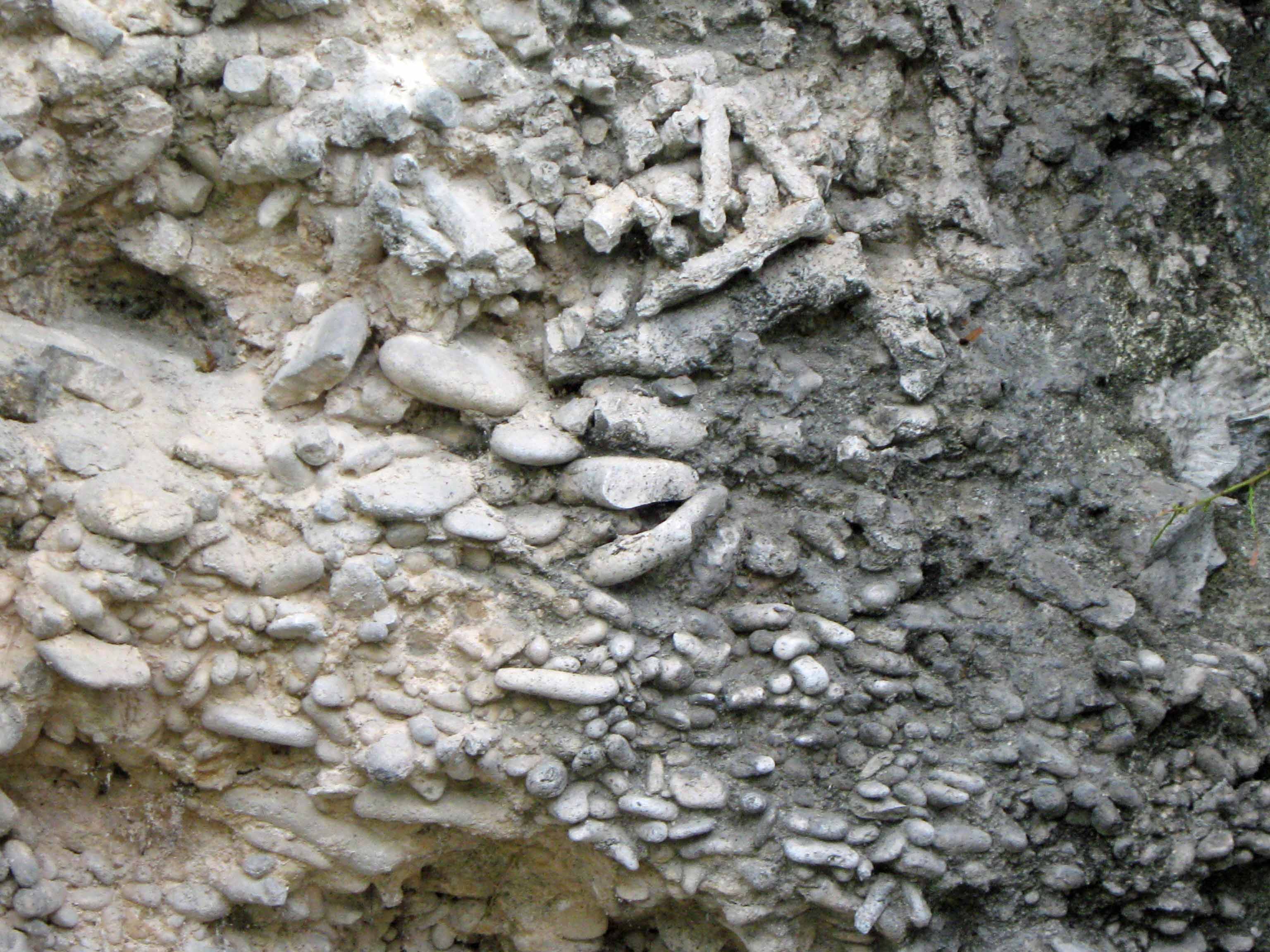 Coral exposed at the university outcrop. You can tell geologists have been here! Barbados, June 2009.