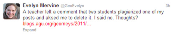 However, I’m happy to see that my twitter followers and blog readers are so passionate about issues regarding the internet and plagiarism. Please feel free to comment (productively and politely– I reserve the right to remove comments) about plagiarism and the internet below.