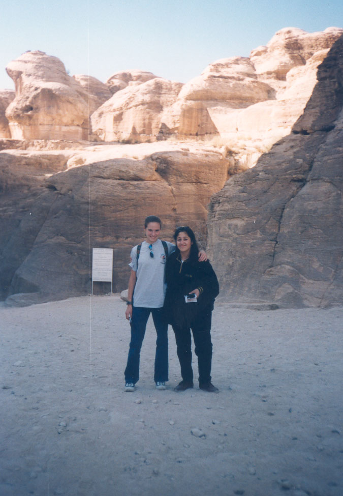 With a classmate in Petra, Jordan. Fall 1999.Hanging out with some sandstone in Petra, Jordan. Fall 1999.