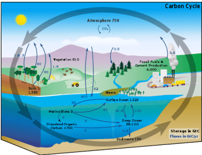 The carbon cycle. Taken from Wikipedia Commons here. Click to enlarge. |