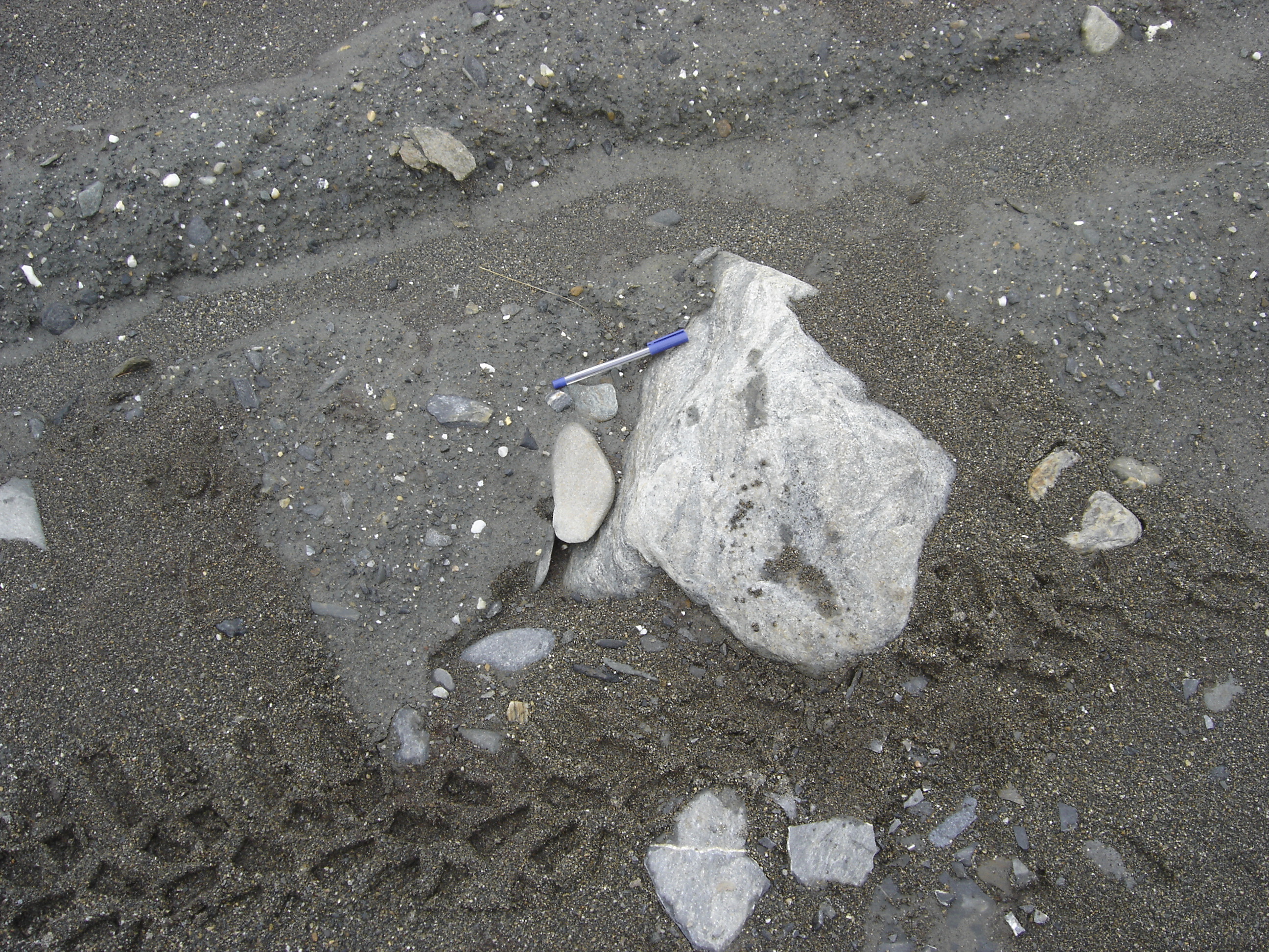 Another glacial erratic on the beach in Nome, Alaska, Summer 2012. Pen for scale.