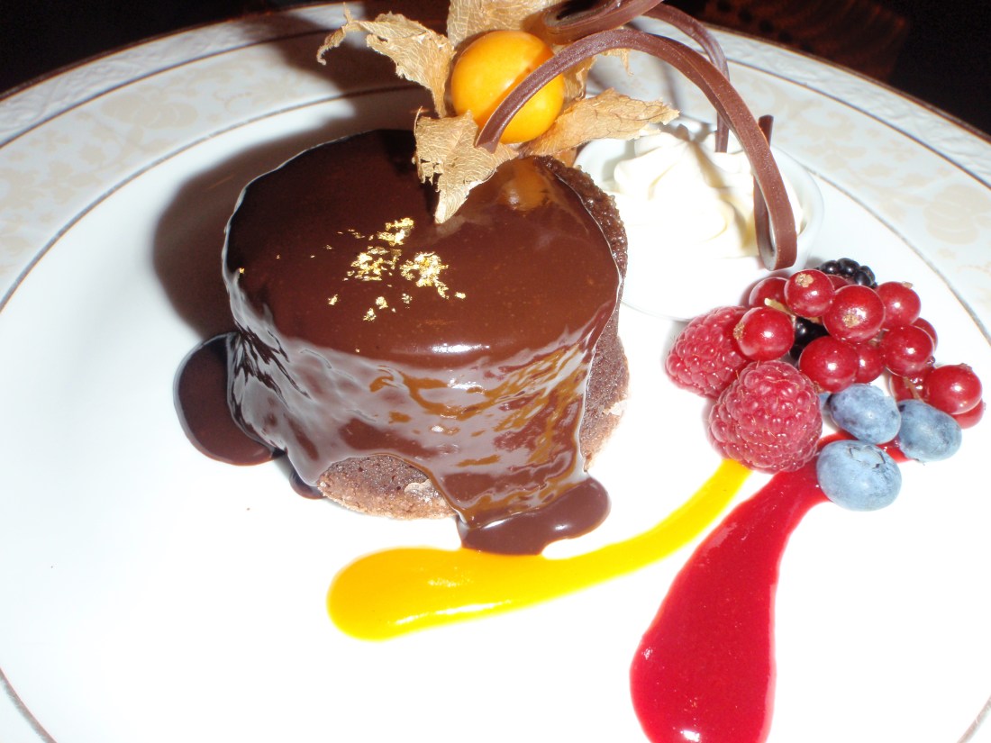 The gold leaf was very pretty on the dessert. However, if you think about it, eating gold leaf is absurd: it’s very expensive, and it has no taste. Eating gold (at least the purified gold used for food items) won’t hurt you, but it doesn’t have any nutritional value. Nevertheless, considering that we were enjoying lunch at the world’s second most expensive hotel, eating a gold leaf decorated chocolate dessert seemed appropriate. Although the gold leaf didn’t contribute to the flavor, the dessert tasted heavenly; it was one of the best desserts I’ve ever eaten. Kudos to the bakers and chefs.