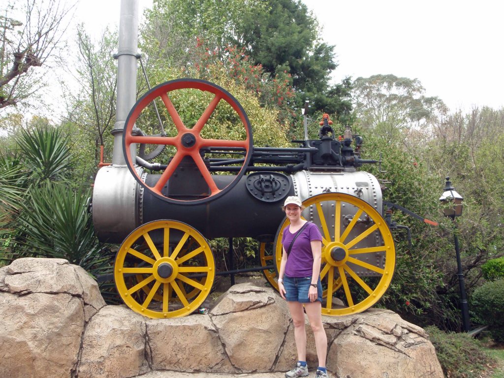 This week I’m sharing some pictures of trains. One of the things that I like about Gold Reef City is that there are trains (or train-like things? I’m not sure all of these pictures show true trains) throughout the park. The trains fit well with the park’s mining theme– I imagine that there were many trains among the mines of Johannesburg in the past. If anyone is a train buff and knows anything about these trains, please feel free to leave a comment below.