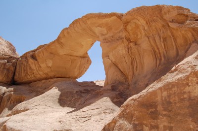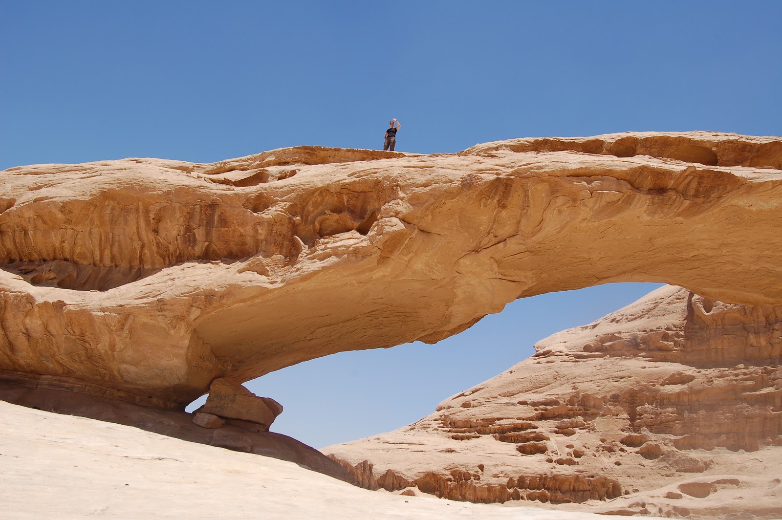 Yours truly on top of a rock arch, Wadi Rum, Jordan, circa 2007.