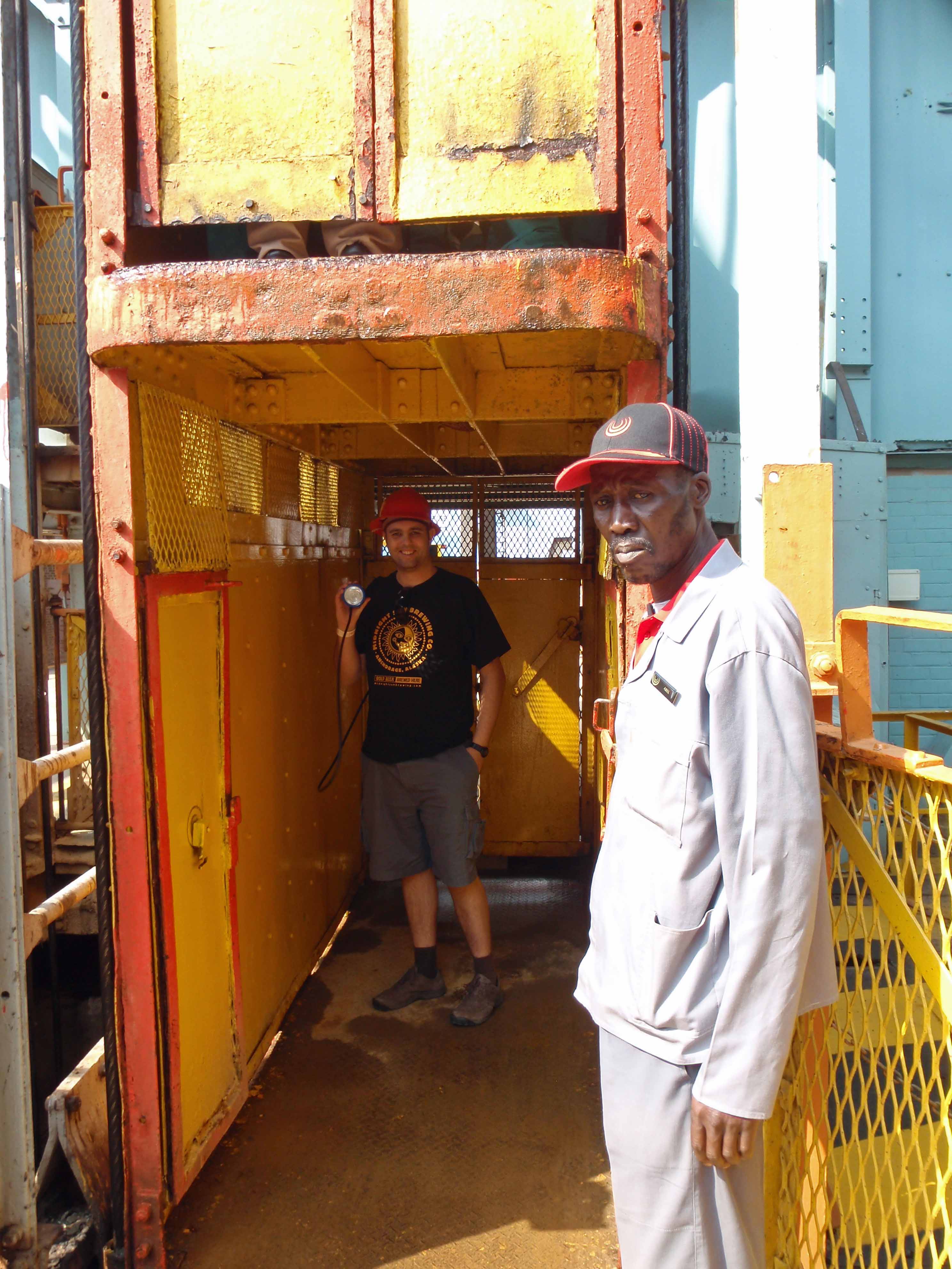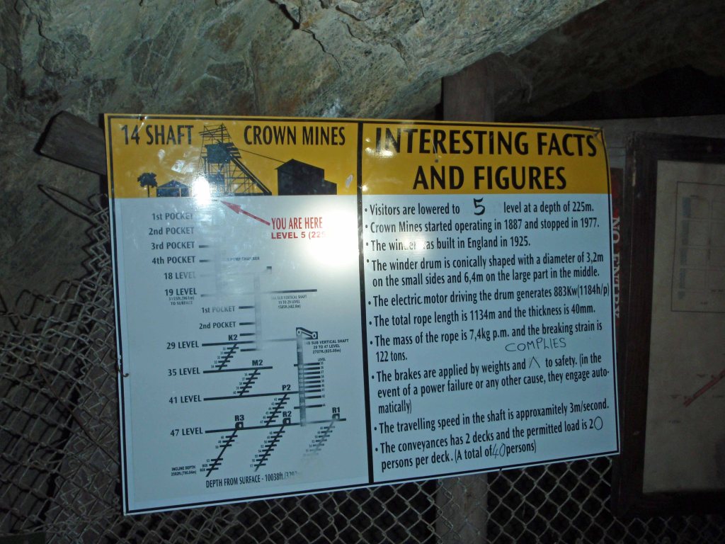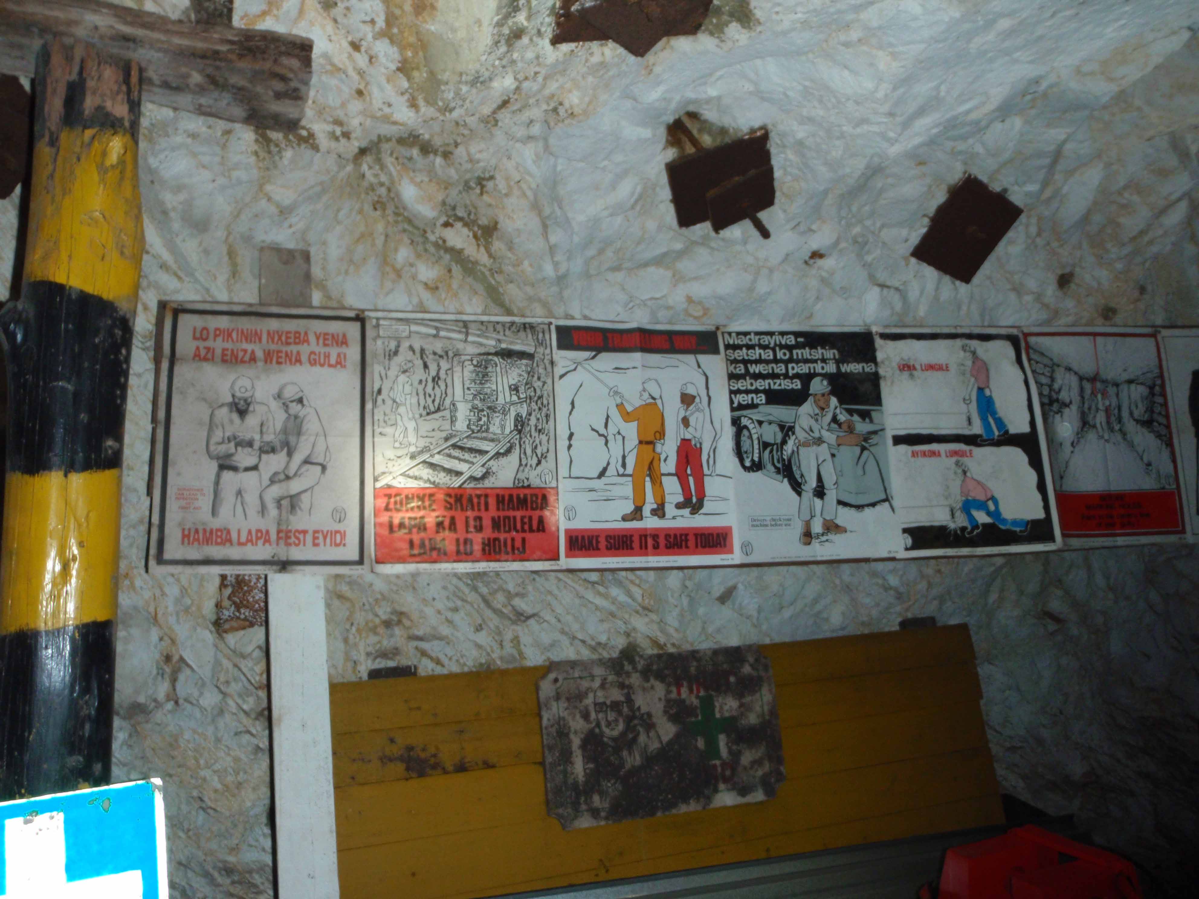 Early extent of the mine, 1916-1920. Mine goes to 975 meters depth.The mine just before its closure in 1977. Mine goes to 3,200 meters depth. The elevator down the mineshaft.We were quite excited to be headed down the mineshaft.Mining equipment. The walls are painted white to increase the effect of illumination.This box was used to store dynamite. It has a sloping top to prevent miners from accidentally putting lanterns on top of it. Another dynamite box.There is an underground pub behind this door. You can rent it out for functions. Fun!Old mining posters.