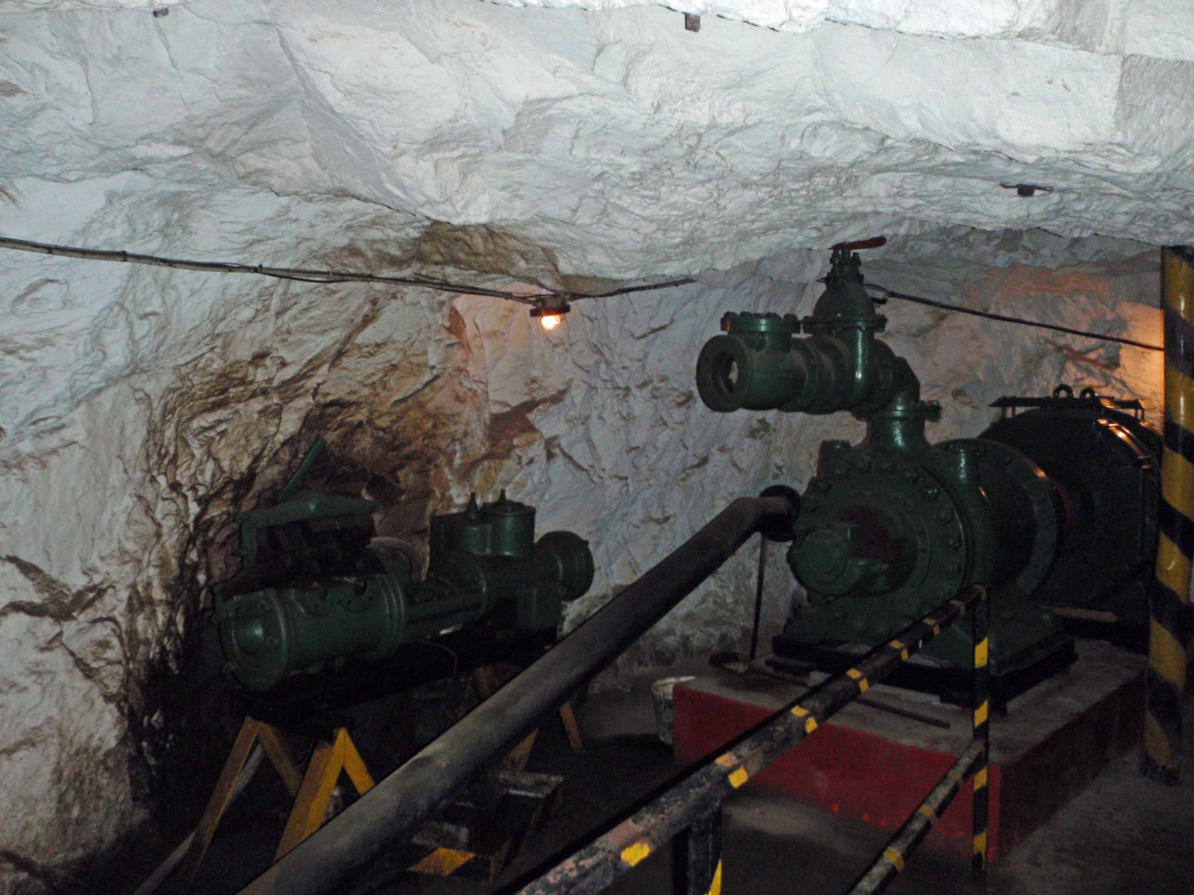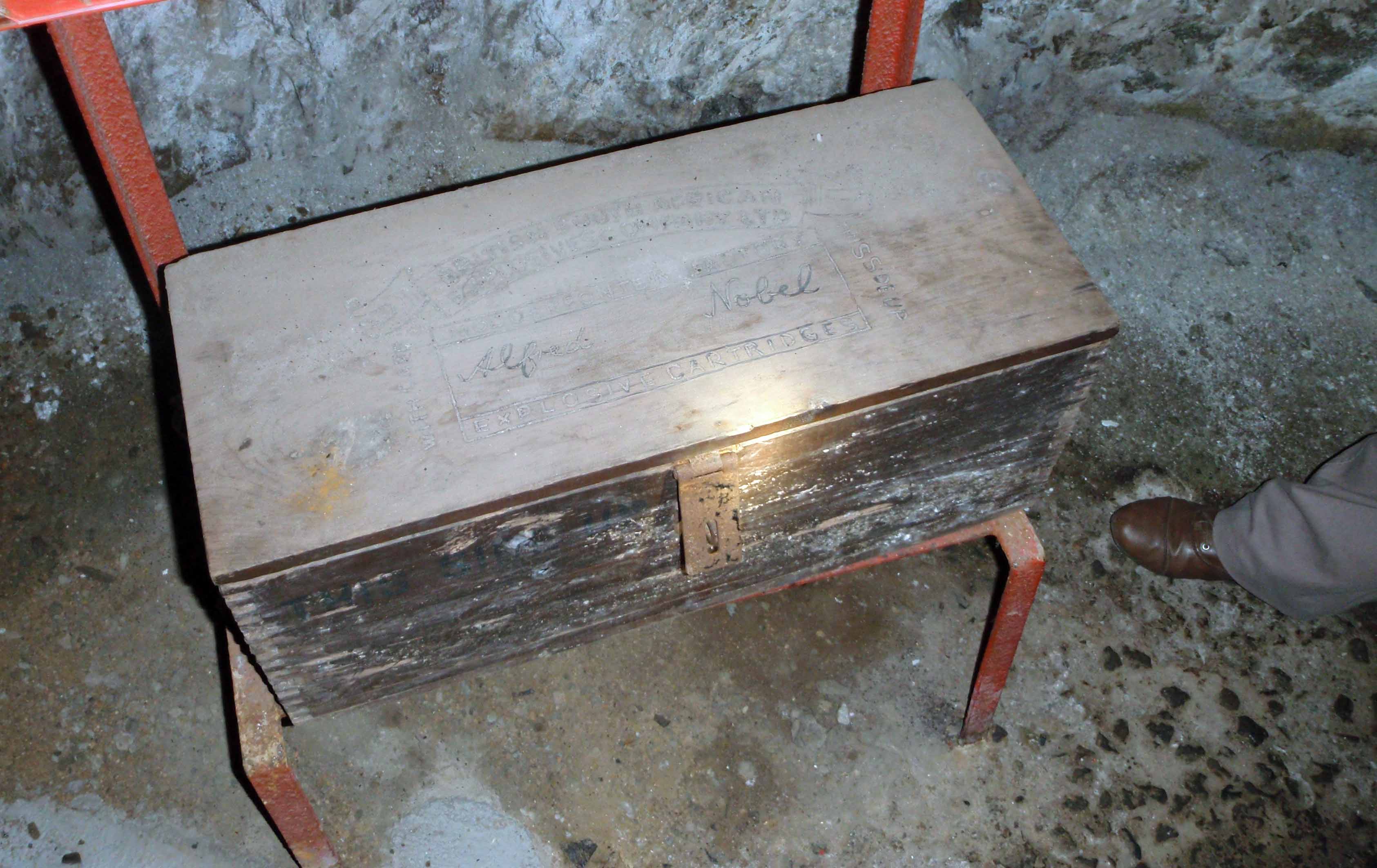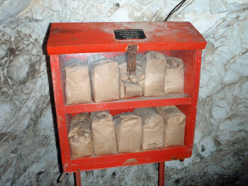 Early extent of the mine, 1916-1920. Mine goes to 975 meters depth.The mine just before its closure in 1977. Mine goes to 3,200 meters depth. The elevator down the mineshaft.We were quite excited to be headed down the mineshaft.Mining equipment. The walls are painted white to increase the effect of illumination.This box was used to store dynamite. It has a sloping top to prevent miners from accidentally putting lanterns on top of it. Another dynamite box.There is an underground pub behind this door. You can rent it out for functions. Fun!Old mining posters.