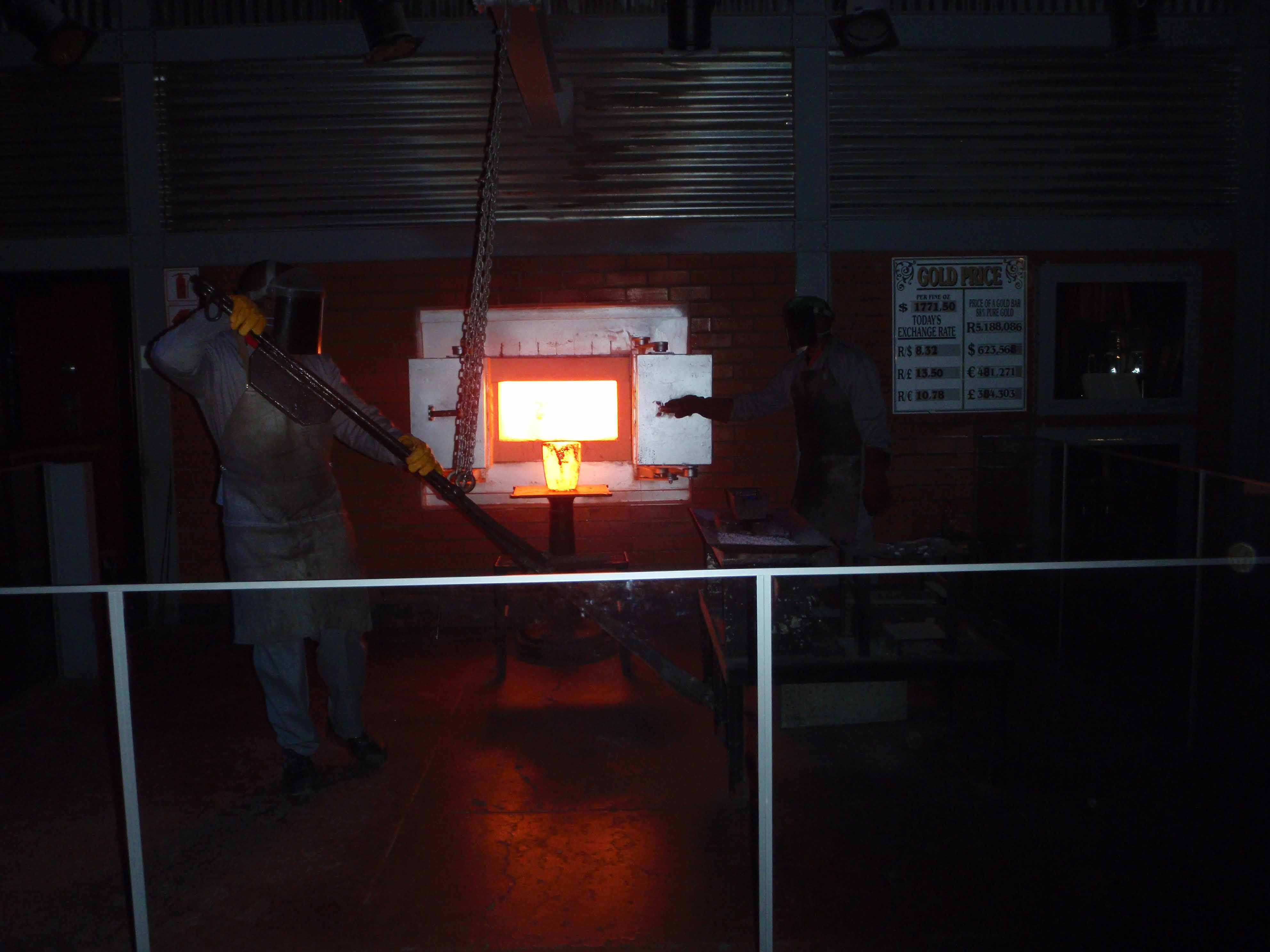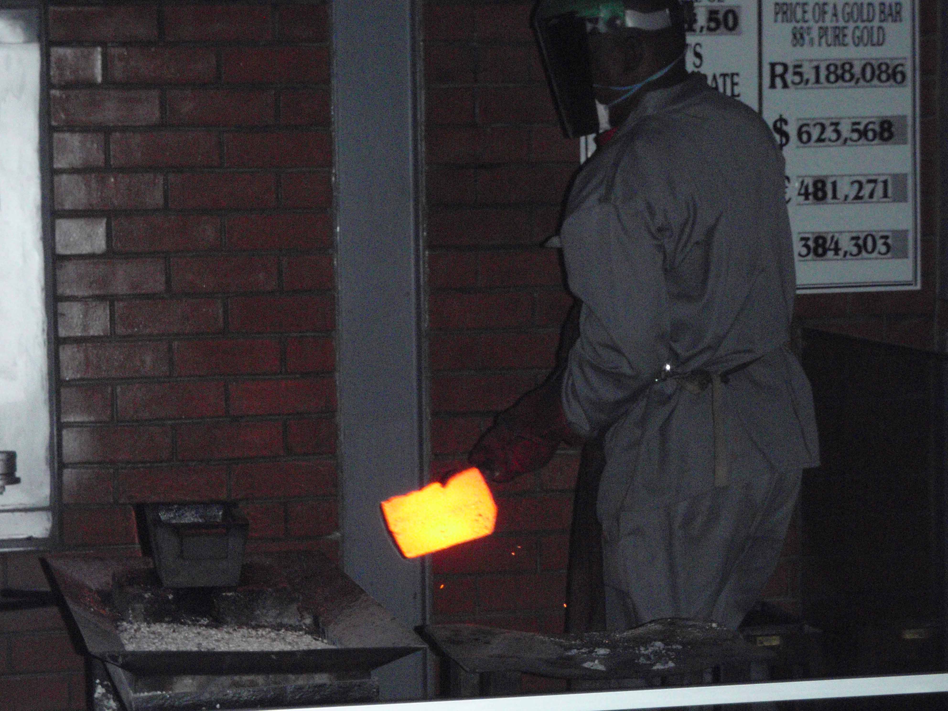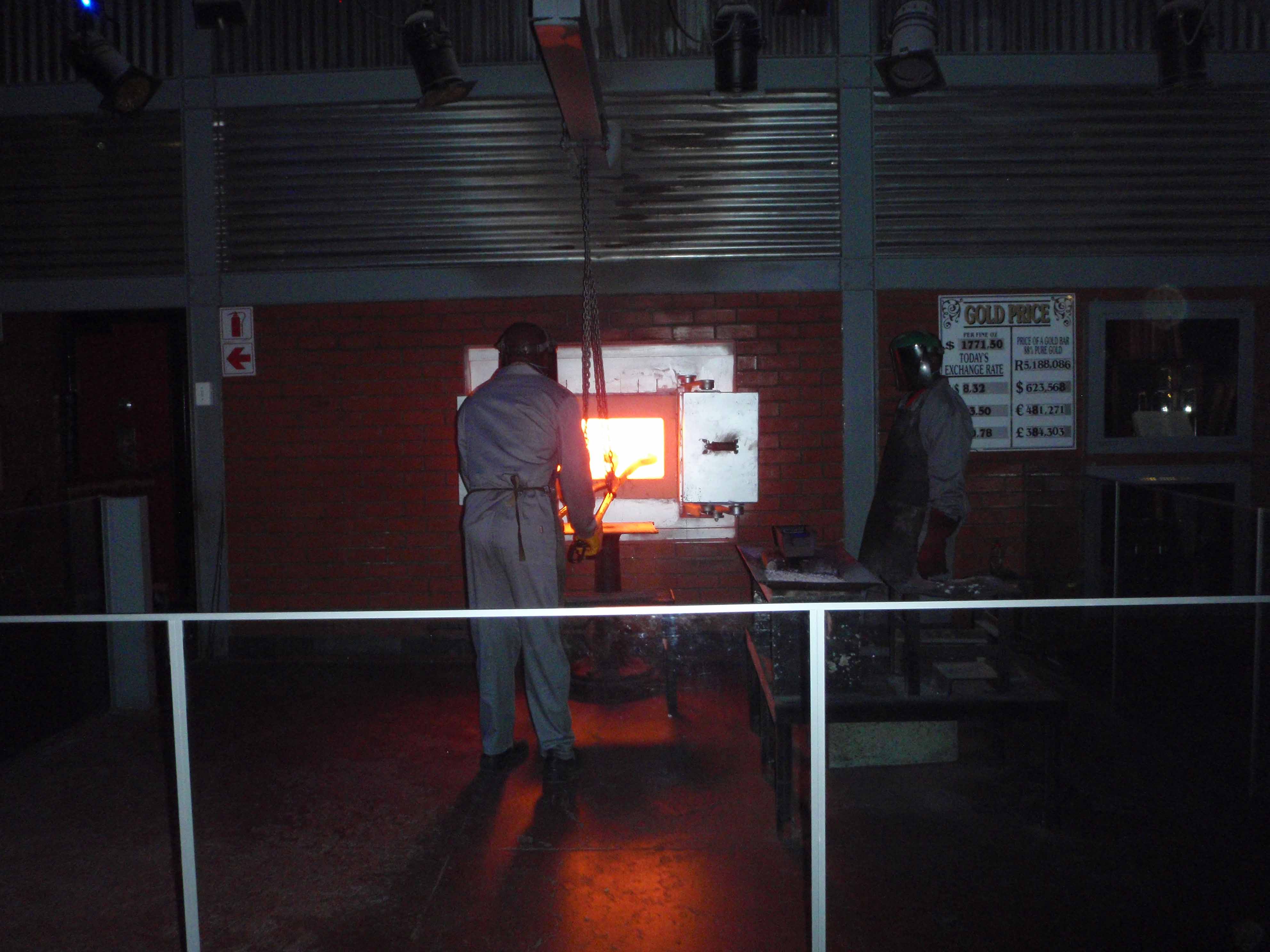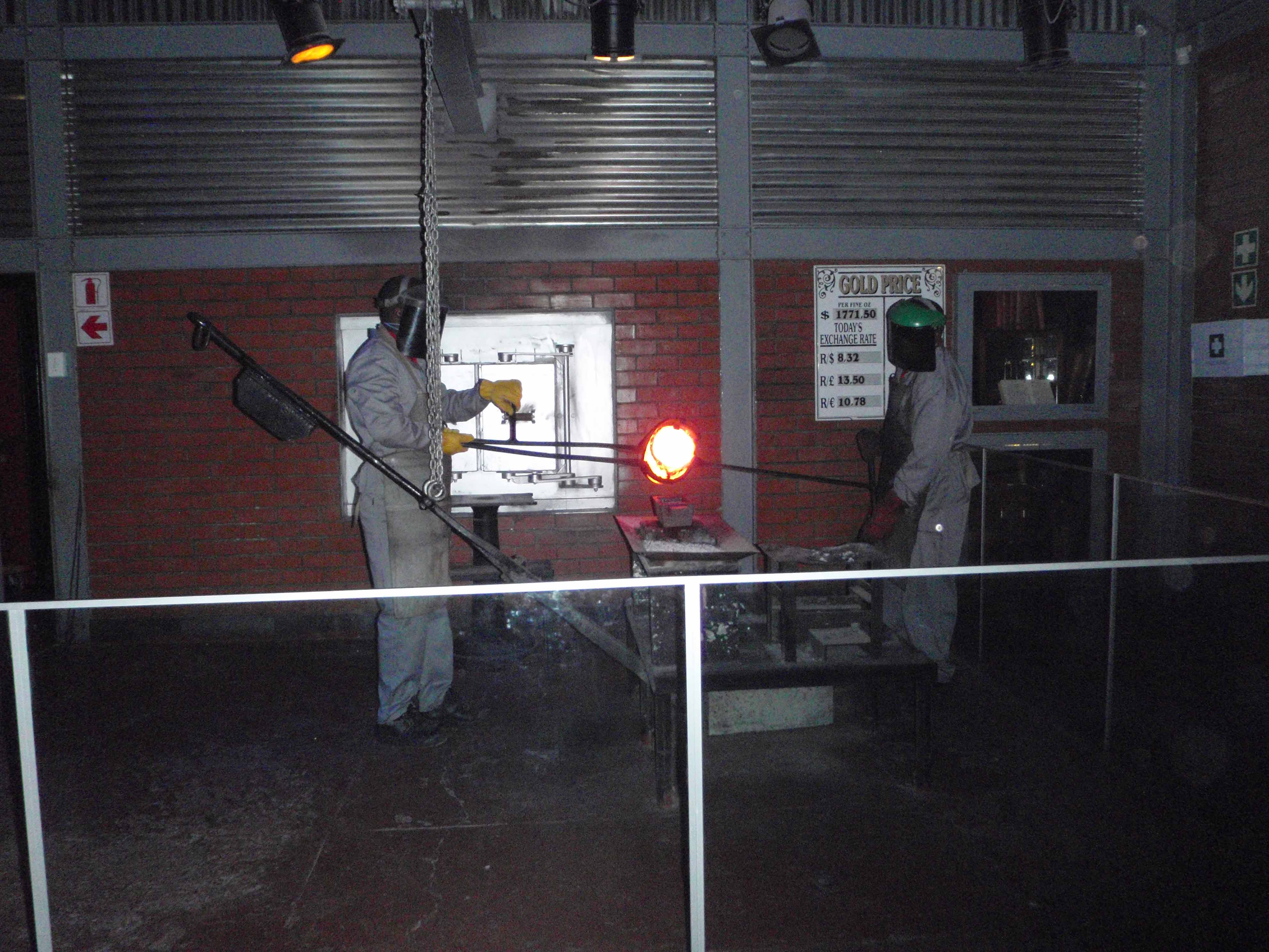 After entering through the impressive entrance and going on the underground mine tour, my husband and I went to the gold pouring demonstration at Gold Reef City, a theme park in Johannesburg, South Africa that is situated on the site of an old gold mine. We visited the theme park back in September 2012.