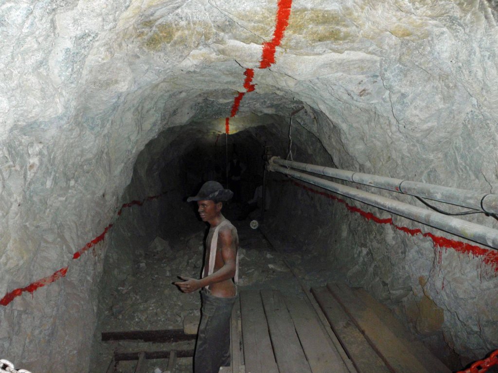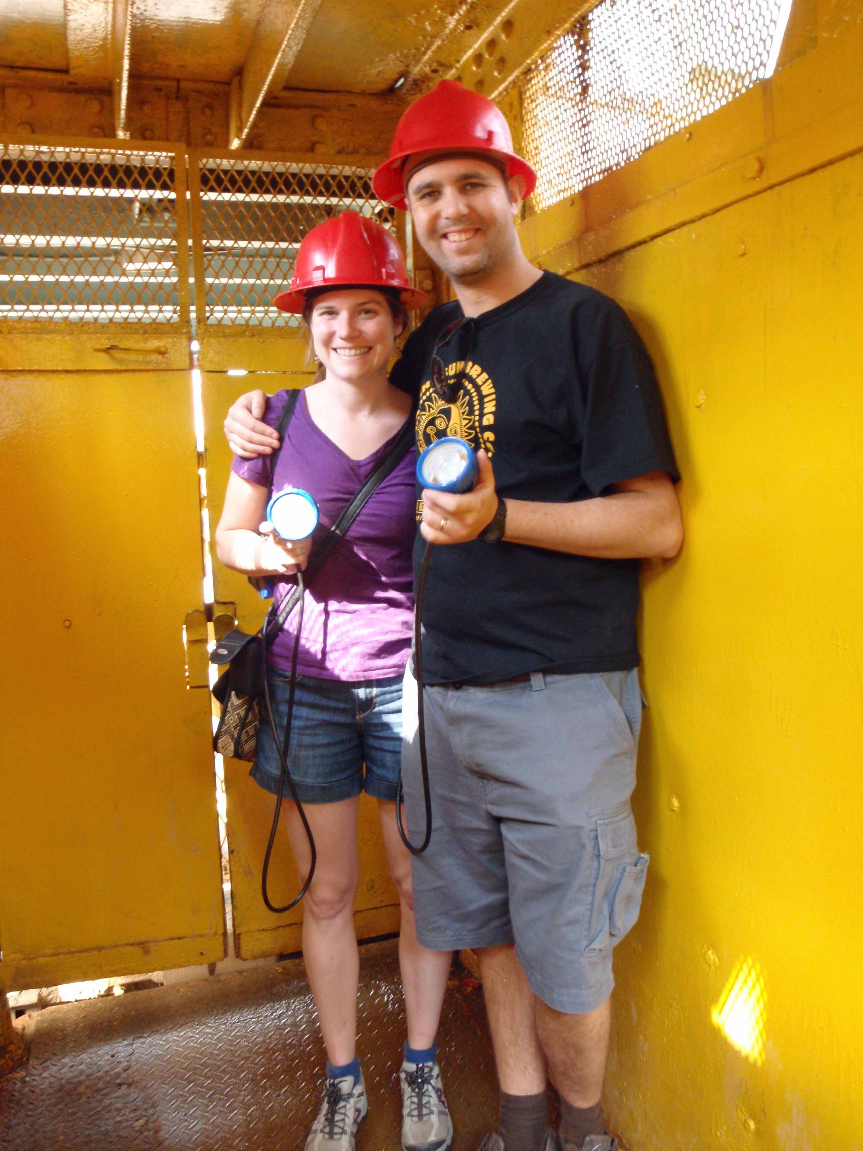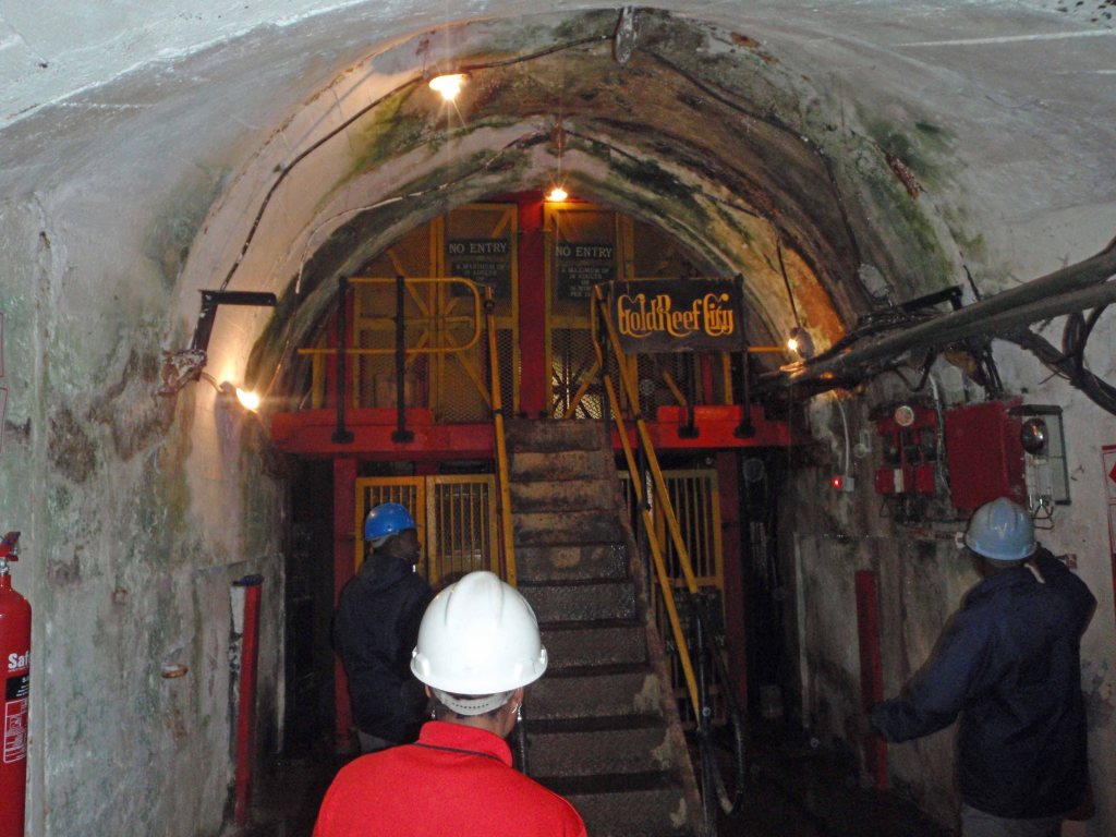 For a few weeks, I’m sharing some pictures from a visit to Gold Reef City, a gold mining themed amusement park in Johannesburg, South Africa, back in September 2012. Last week I shared some pictures of the mining-themed entrance. This week I am sharing some pictures from the underground mine tour. The park is located on the site of an old gold mine. Now that water is no longer being pumped out of the mine in large quantities, most of the mine has flooded. However, the upper part of the mine is still accessible, and you can arrange to go on an underground tour with a guide. I highly recommend the tour. It’s fascinating to see the mine, and the guide that we had was extremely knowledgeable. My husband and I were the only people signed up for the early morning tour, so our guide spent extra time with us and even pointed out a few things that weren’t on the regular tour. Since my husband and I are in the gold mining industry ourselves, we certainly had plenty of questions. Our guide said that she appreciated our enthusiasm and said that, sadly, many of the schoolchildren who go on the tour are not very interested– they are much more interested in the rides and entertainment up top!