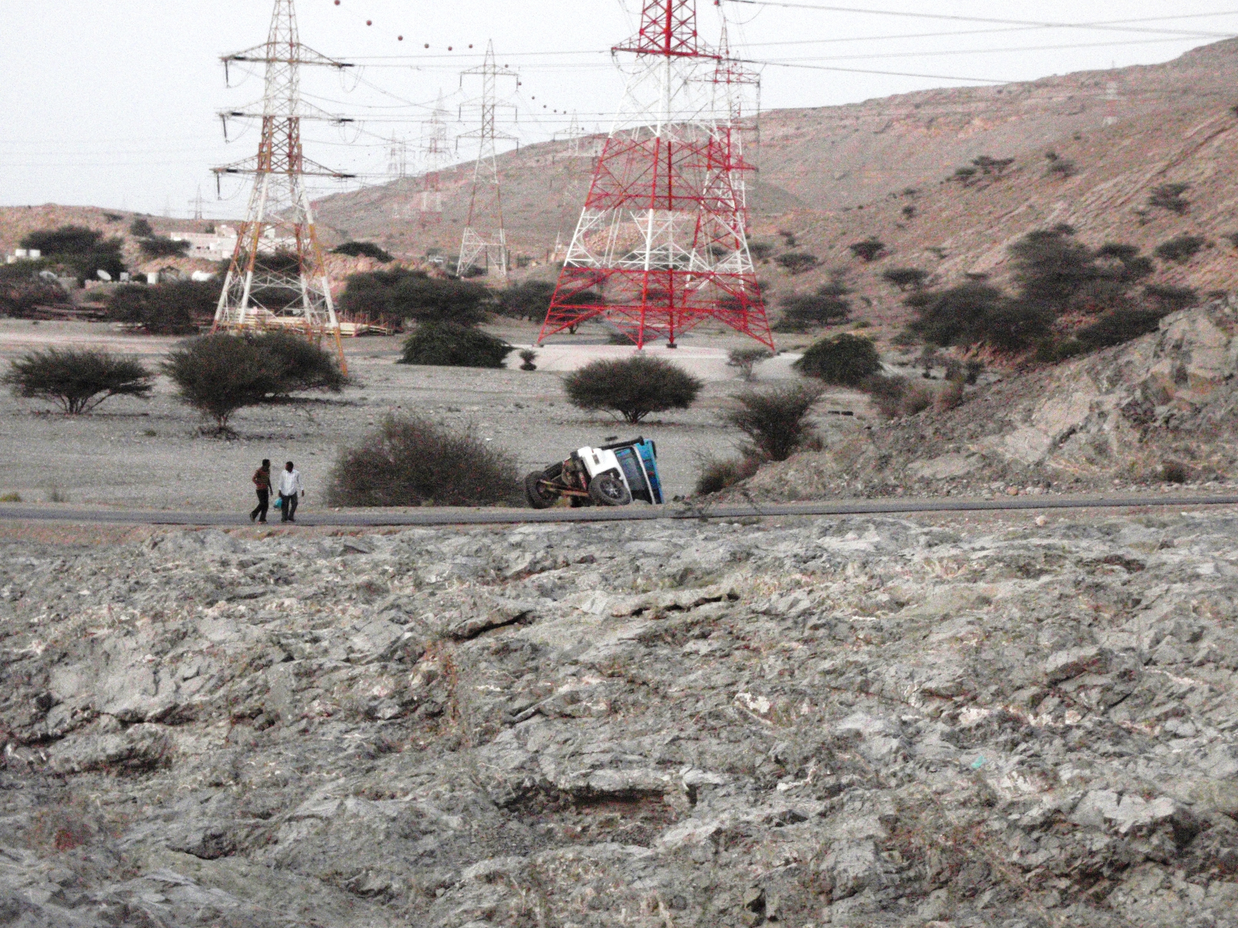 | Lisa standing next to an enormous column of travertine, Oman, January 2009. |