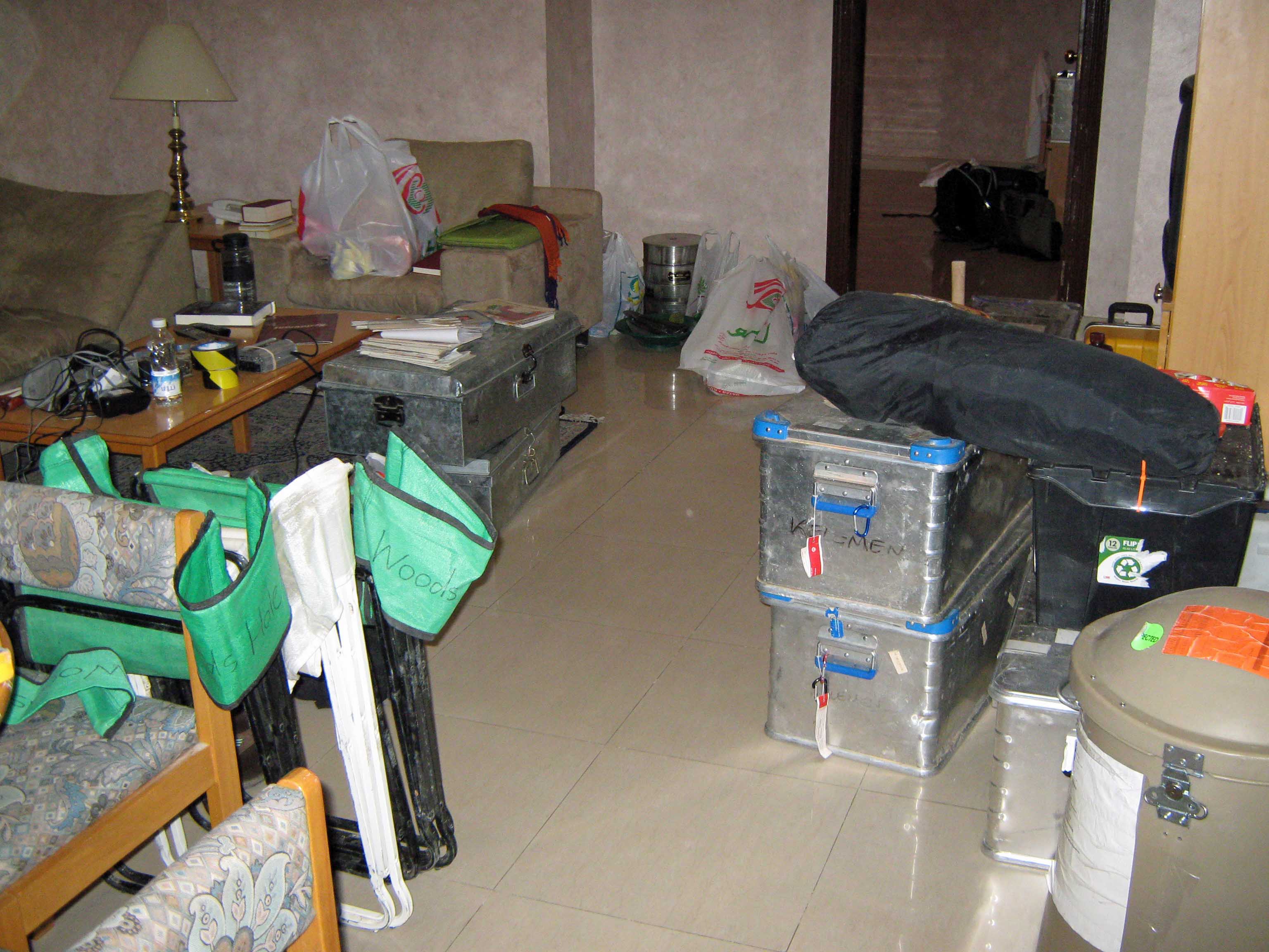 | Posing with a pseudostalagmite, Oman, January 2009. |