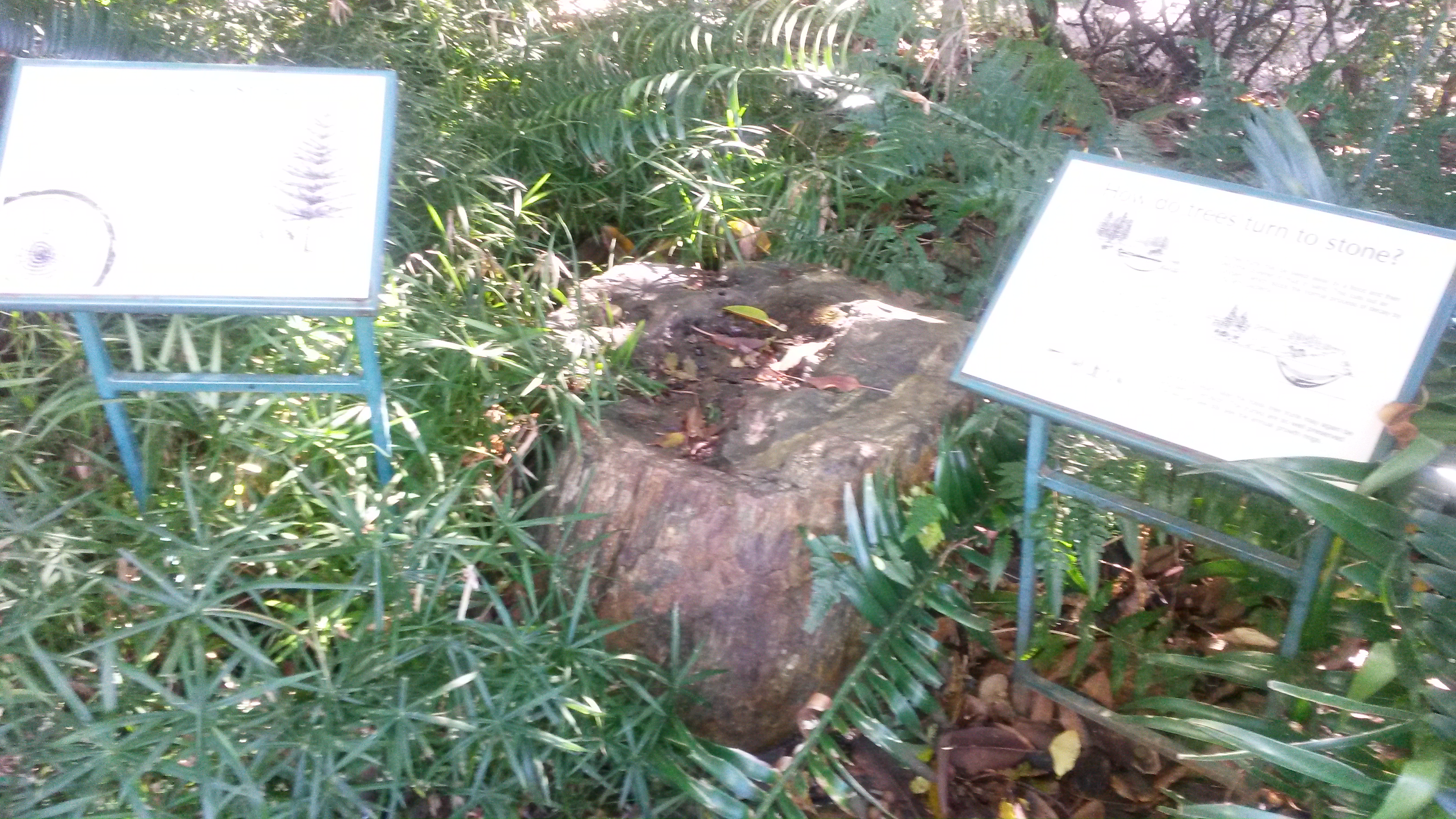 When we arrived at the entrance to the Natural History museum, we could tell right away that the museum was going to be great fun to visit. That’s because flanking the entrance to the museum are a few giant rocks! Specifically, a giant boulder of banded ironstone and two tall pieces of petrified tree.
