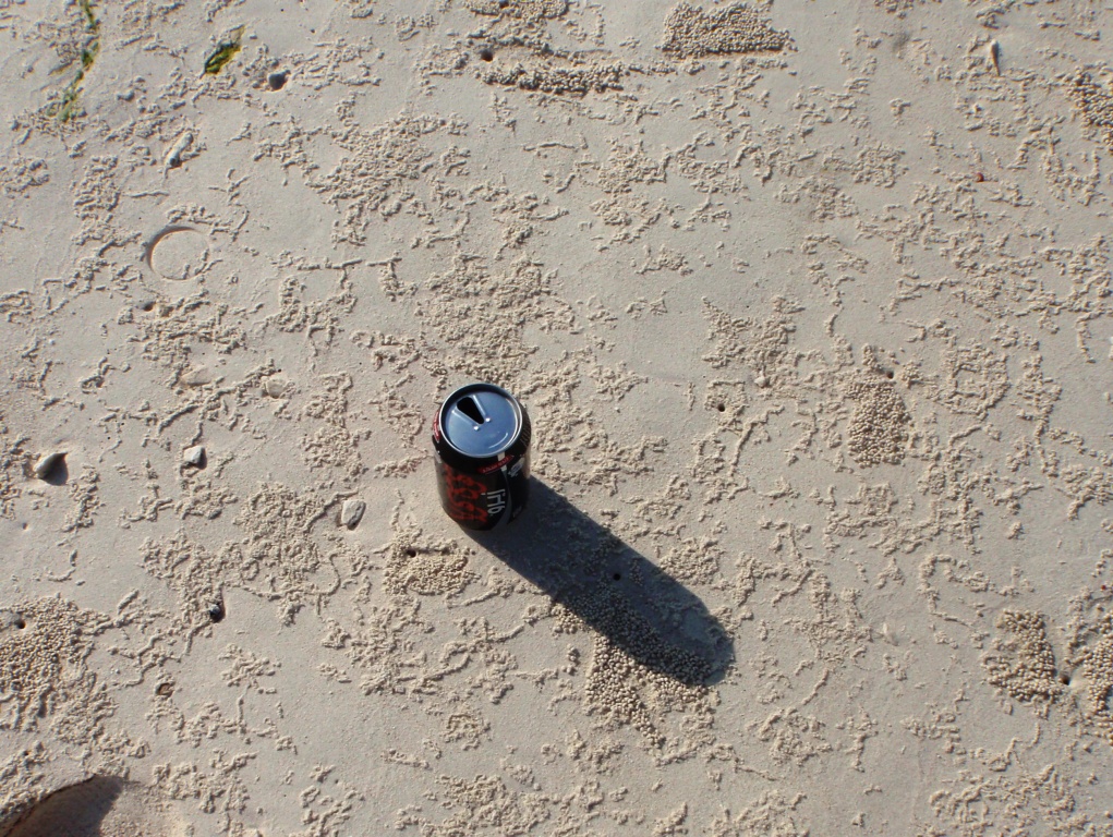 Crab holes and sand bubbles, with an Arabic Coca-Cola can for scale. Barr Al-Hikman, Oman, January 2012.