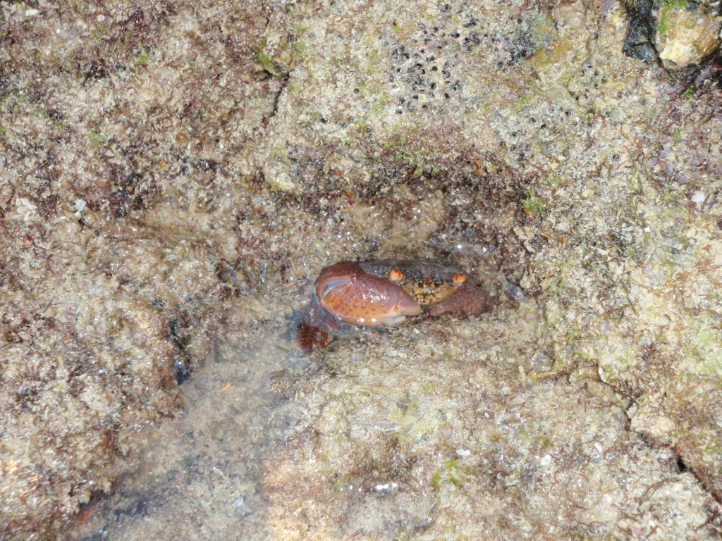I’m not normally that interested in biology. Generally, I find biology stuff such as vegetation annoying since it covers up the interesting rocks. However, I enjoyed meeting these two crabs: Mr. Red Crab and Mr. Little Crab. Can anyone identify these two crab species and tell me more about them?