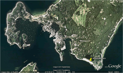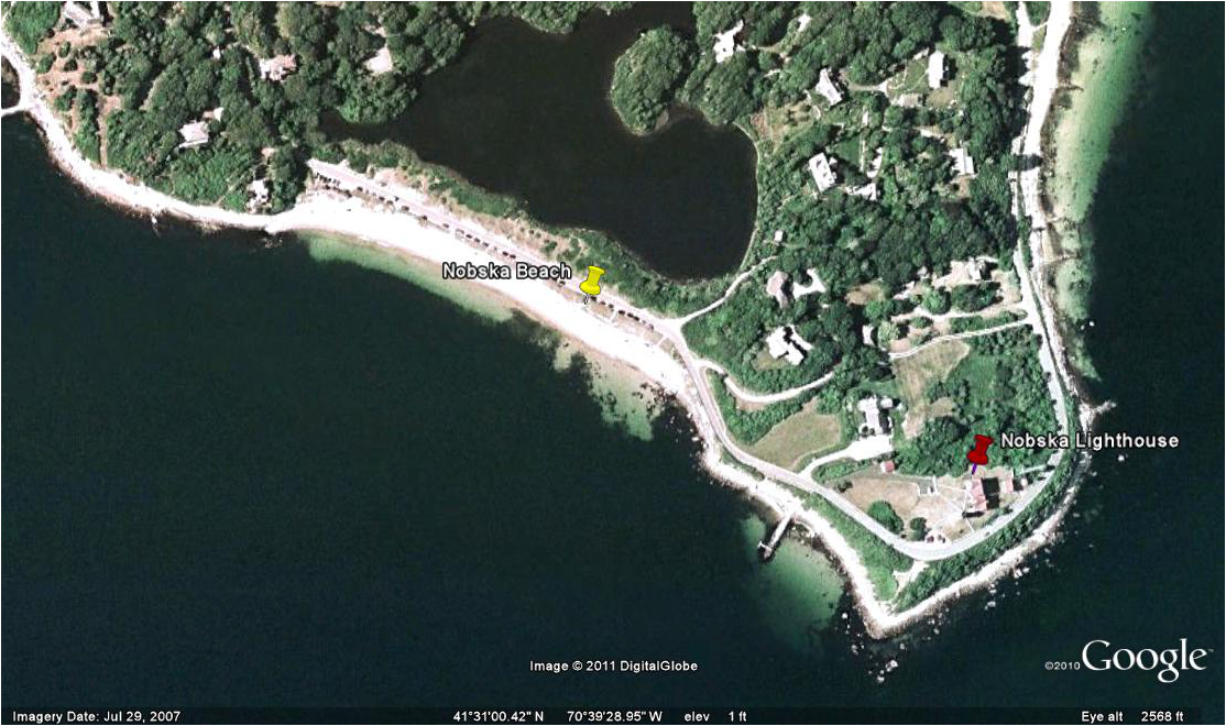I was very excited to discover the geology word “nebkha” or– more properly transliterating from the Arabic– “nabkha” for two reasons. First, this word exactly describes some sand structures that I noticed last month at Nobska Beach here in Woods Hole. When I observed these features, I didn’t know the word nabkha, so I just called them sand structures. Now I know that these structures are small nabkhas, which are mounds of sand which accumulate around and which are stabalized by vegetation, in this case small plants growing out of the beach. Several other terms are used to describe similar sand-vegetation features. For example: bush-mound, shrub-coppice dune, knob dune, and phytogenetic hillock (Khalaf et al., 1995). However, I think that nabkha is the most comprehensive word and also the prettiest.