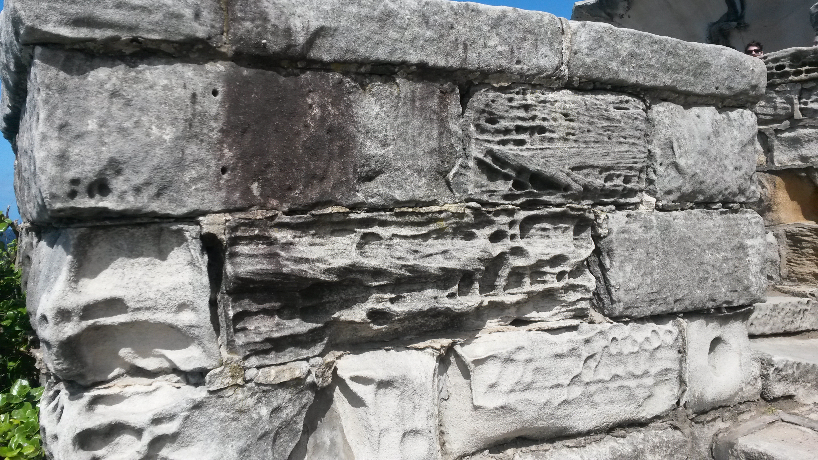 During my recent travels in Australia, I noticed quitea bit of sandstone around Sydney. Therefore, I was not particularly surprised to also see quite a few sandstone building stones around the city. For example, the stones shown in the above picture, which shows part of a bridge in North Sydney.