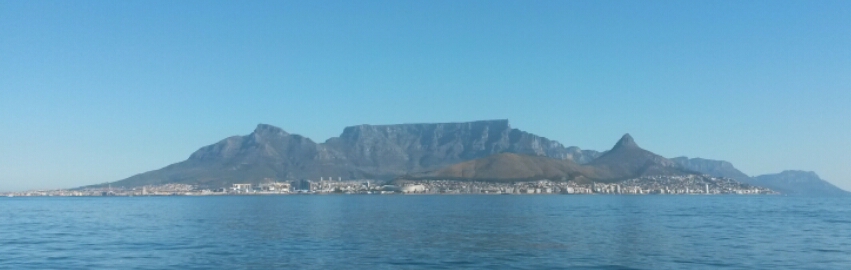 Table Mountain viewed from the sea. Bon Voyage, Cape Town!