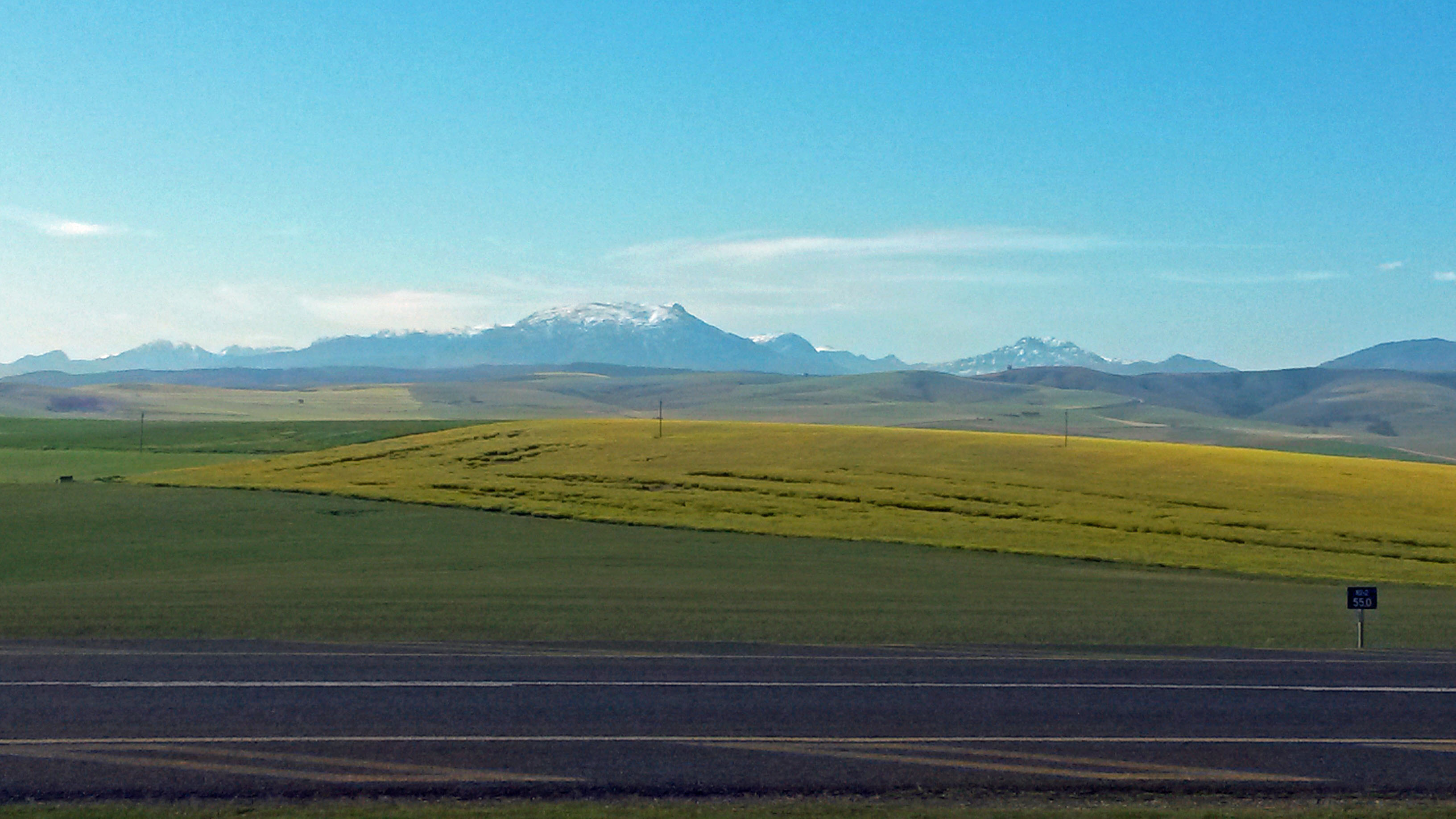 A snowy mountain landscape along the N2 highway in the Western Cape, South Africa.