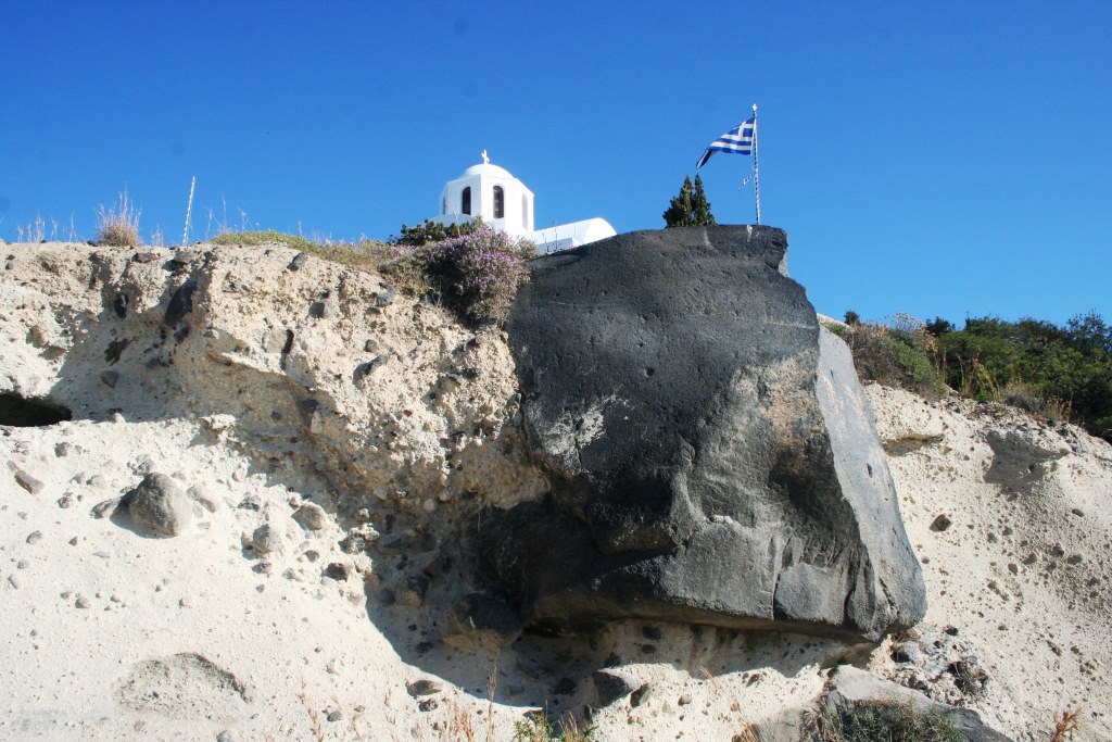 Santorini #2, with sailboat for scale.Santorini #3.Santorini #4, with some houses for scale.Santorini #5, with Nia for scale.Santorini #6.Santorini #7.Santorini #8, with some beach visitors for scale.Santorini #9, with flag and a building for scale.