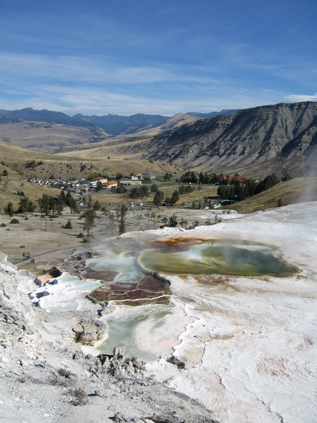 Pictures of hot, low-pH (acidic), CO2-degassing travertines in Yellowstone: